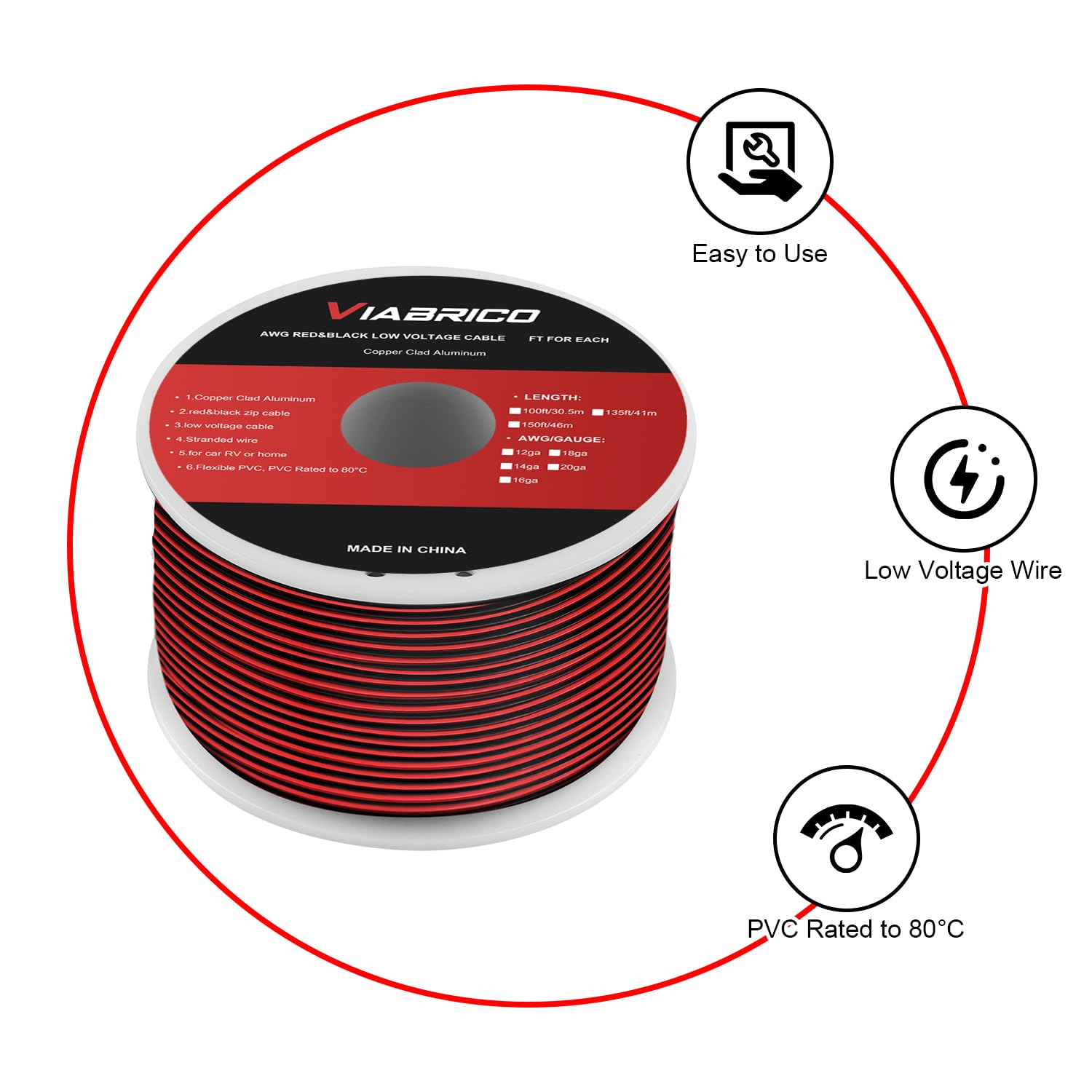 VIABRICO 12Gauge 150FT Electrical Wire Cable 2 Conductors Red Black Cable Hookup LED Lighting Strips Flexible Wire Extension Cord 12AWG Copper Clad Aluminum Copper Wire 12V/24V DC