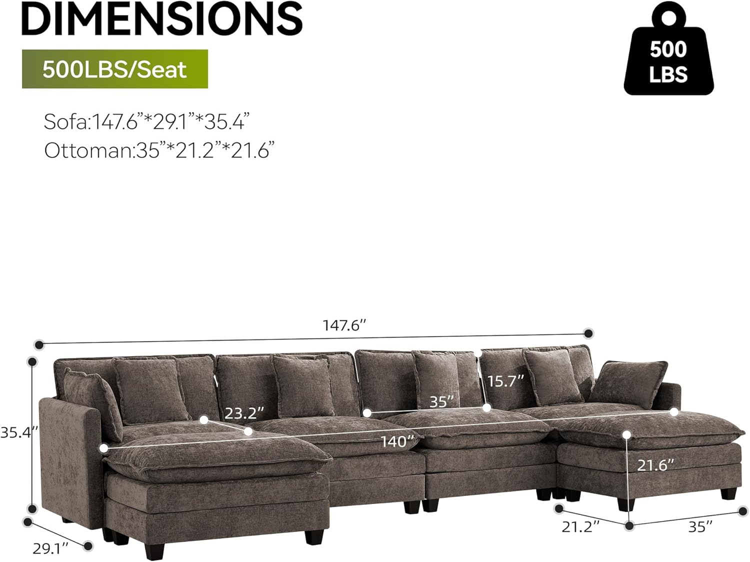 • Modular Sectional Design: Choose between single, loveseat, 3-seater, 4-seater, or extended options with ottomans. Allowing you to easily arrange different sections into U-shapes, L-shapes, straight lines, or bed-like configurations to fit your living space perfectly. This modular sectional couch adapts effortlessly to large living rooms and open spaces.