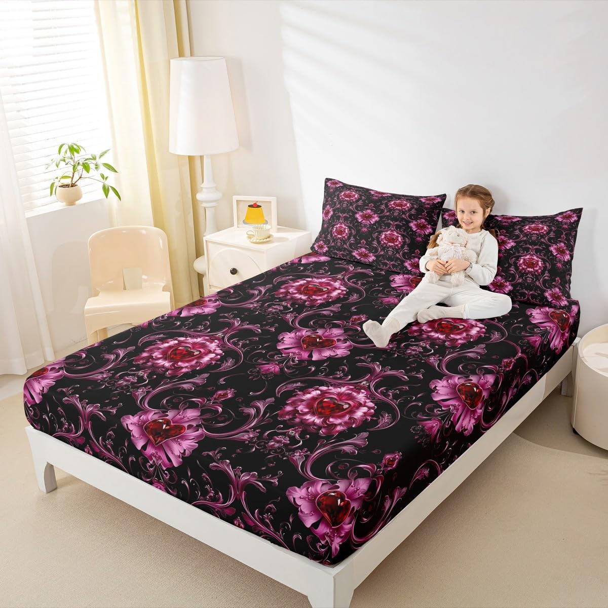 Our fashion Designs Match Any Decor,Modern Fitted Sheet Set Bedding Set,Simply Decorating Your Rooms Any Time You Want,Bringing You Fresh Feel for Year Round Use.Made From Polyester Microfiber Size Information Twin Size Include 2 Pieces Fitted Sheet Set: 1 Fitted Sheet 39"Wx75"Lx16"H(99x190x41cm) and 1 Pillowcase 20"x30"(51x75cm). Full Size Include 3 Pieces Fitted Sheet Set: 1 Fitted Sheet 54"Wx75"Lx16"H(137x191x41cm) and 2 Pillowcase 20"x30"(51x75cm). Queen Size Include 3 Pieces Fitted Sheet Set: 1 Fitted Sheet 60"Wx80"Lx16"H(152x203x41cm) and 2 Pillowcase 20"x30"(51x75cm). Personalize Your Bedroom Beautiful Design and Colorful Print Bed Set,Makes Your Bedroom Unique and Brings You a Wonderful Dream. Washing Instructions Machine Wash Separately In Cold Water,Hang Dry,Do Not Bleach. The Soft Fitted Sheet Bedding Sets Designed for Children,Adult,Men,Women,Teens.This Bed Sheets Is Also Suitable for Full Seasons,Spring,Summer,Autumn and Winter. We Are Dedicated to give You An Excellent Experience, Satisfaction Service from The Moment You Place Your Order Until You Sleep on Your New Bedding The First Time.