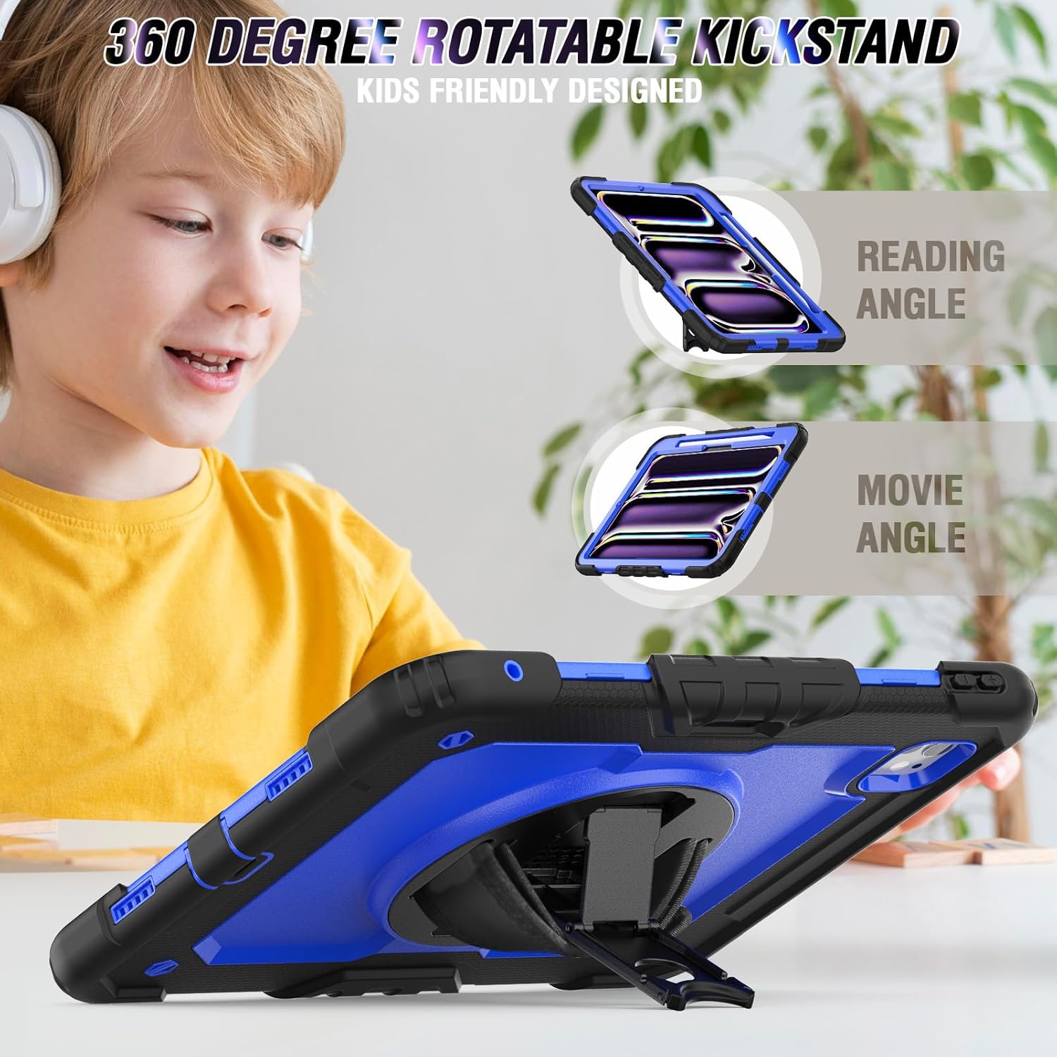 • Built-in 360 Rotatable Kickstand + Hand Strap : 360-degree rotating swivel stand supports position of 3 angles(Vertical, Horizontal, and Halfway between), ideal for watching videos, conferences and travelling. Soft rotating handle strap prevents falling of iPad Pro 13 7th Generation tablet, featuring convenient use for teachers, students, waiters, doctors, nurses and conference presenters.