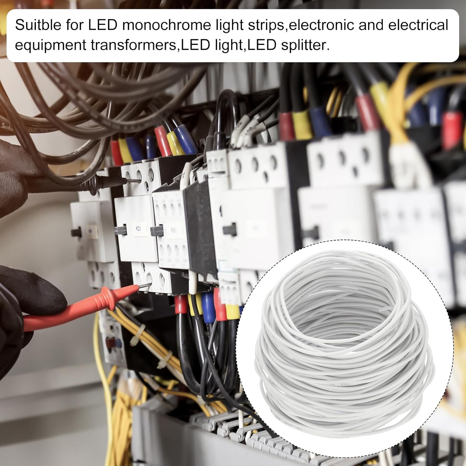 What is this?Our wire cable easy to strip,cut,solder and can be used as extension cable or low voltage wire to be widely used in led lights, LED splitter connections, electrical and electronic equipment, landscape lighting, transformers, bulbs, automotive, trailer wire, marine wiring, speakers, automobiles, sprinkler, thermostat cable and other. It can be buried directly or exposed to the sun for a long time.What will I get?Color: GreenLength:45.7m/150ftNominal Voltage: 600VTemperature Range:90 ℃Conductor: CopperGauge:12AWGOver Diameter:4mmPackage includes: 1x Electrical WireAre there any advantages of the product?Highly efficient - Super low impedance for a highly efficient connection.High purity Stranded oxygen-free copper with tin-plated, specification features high conductivity, low resistance and soft, can be bent arbitrarily, easy to welding, stripping, crimping terminals,connect,cut.How to use it?The wire is flexible, durable and easy to bend, so that you can better separate the two wires in use without exposing the wires inside.What should I notice?The nylon jacket is abrasion, heat, moisture, gasoline, and oil resistant. The Stranded wire also has a capacity of up to 90C in dry locations. This type of electric cable is effective in damp and dry locations.