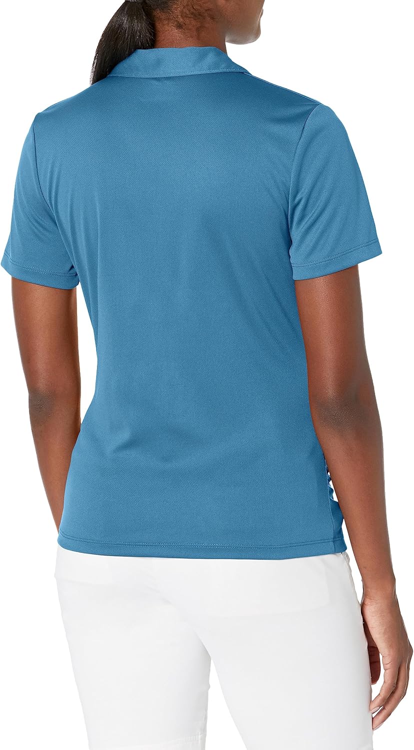 Stay cool and stylish on the golf course in this PGA Tour women's golf polo. Made from lightweight, innovative mesh fabric with Airflux technology, the ladies' golf shirt is designed to maximize airflow to keep you comfortable on hot days on the course. Moisture-wicking provides a dry fit by moving perspiration away from your skin. Built-in UPF 50 sun protection prevents damaging UV rays from penetrating the material of the women's golf apparel on bright sunny days. Stretch in the shoulder seams and throughout allows you to move easily and swing smoothly with a maximum range of motion. With a contoured fit and open V-neck collar, the ladies' golf wear provides a flattering and feminine style that looks great on the golf course or in town on casual weekends. Easy to care for, the ladies' short-sleeved golf top can be machine-washed to freshen it up after a round of golf. It looks great paired with a golf skort, shorts, or pants for an outfit that performs.