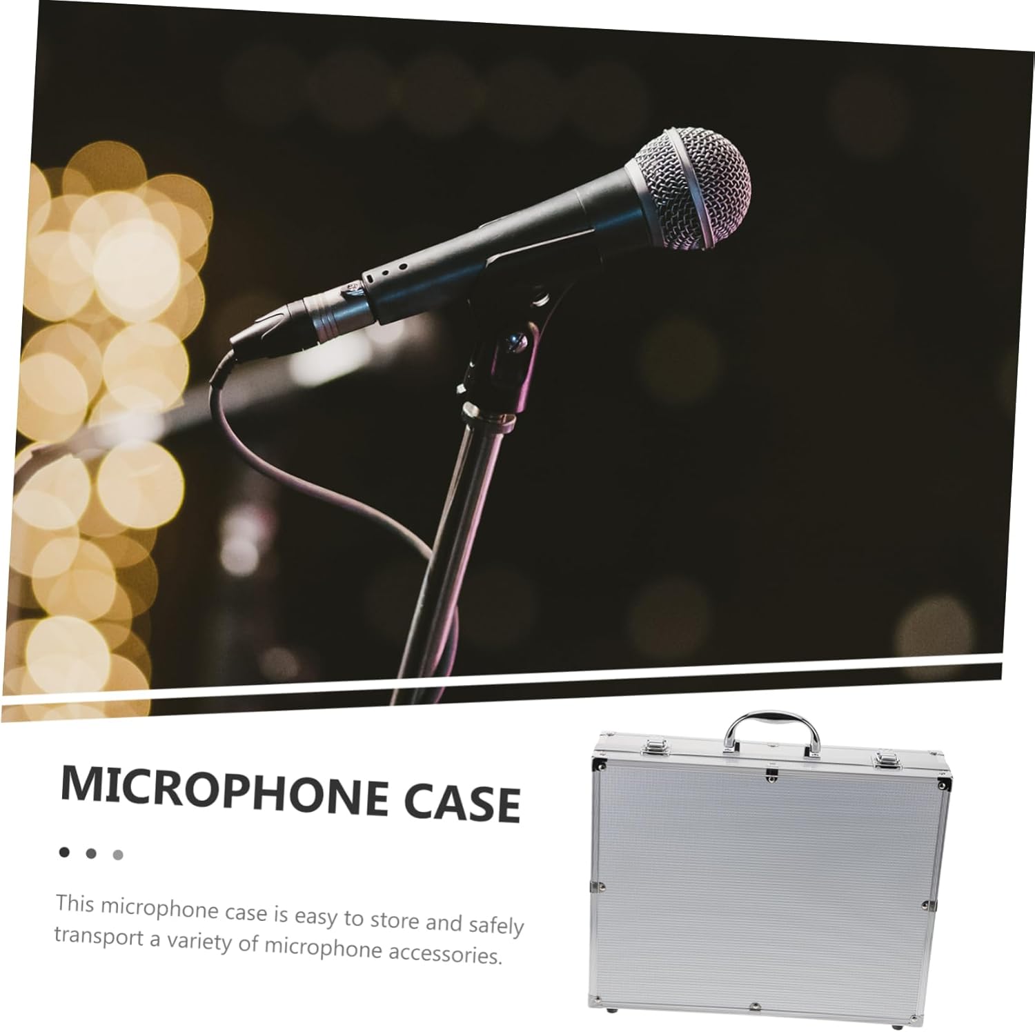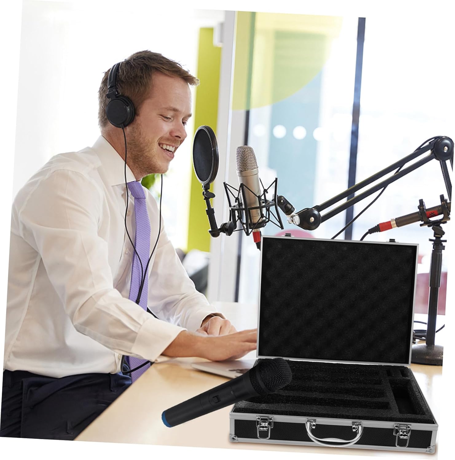 Package List 1 x Microphone Case Characteristics -Note: store 4 microphones each case microphone carrier. -Color:Black microphone case -Material:Aluminum alloy, foam microphone storage organizer -Size:36.50X28.50X9.00cm/14.34X11.20X3.54in mic accessories case -Thanks to its workmanship, this microphone bag is portable, resistant to deformation or breakage, ensuring long-term use mic accessories. -This microphone carrying case can also store various small accessories, such as cables, sponge covers, silicone rings, and more, keeping everything organized and within reach microphone carrying organizer. -Handle design, the microphone case is portable to take, largely save your time and efforts microphone organizer. -You can confidently use this mic case to carry your microphone anywhere, protected from damage microphones case for outdoor. -Whether you're traveling or simply need a safe place to store your microphone, this microphone case provides cushioning against accidental drops case for mic.Goods Informationmic carrying holder Whether you need a practical storage case for your microphone or want to protect it from external damage when you're outdoor, this microphone carrier case is the choice.microphone carrier Simply use this mic case to carry your microphone and accessories, providing added convenience and peace of mind