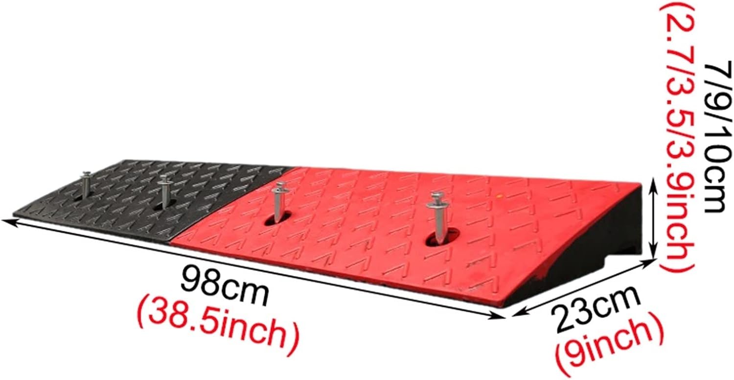 The wheelchair ramp can be used widely in the front of your house, such as balcony, bathroom, doorstep, etc. In addition, the step curb in the garden and some industrial areas can also be applied to.With a modular design, you can create you own curb ramp width size, also ending each ramp with a smooth transition end cap.The rubber construction easily accommodates uneven surfaces and the textured non-slip surface fares well in all weather conditions. Feature:Made of durable rubber material for all-weather applications including outdoor use. The grooves on both sides prevent water accumulation.Two holes for permanent mounting application, ideal curb ramp for loading dock areas and uneven surfaces.Easily run cables, hoses, pipes or wires below your rubber threshold ramp with the built in channel cut outSpecificationMaterial: RubberColor: black redsize:98*15*3 cm(38.5*5.9*1.1 inch)98*15*4 cm(38.5*5.9*1.5 inch)98*15*5 cm(38.5*5.9*1.9 inch)98*23*7 cm(38.5*9*2.7 inch)98*23*9 cm(38.5*9*3.5 inch)98*23*10 cm(38.5*9*3.9 inch)98*28*11 cm(38.5*11*4.3 inch)