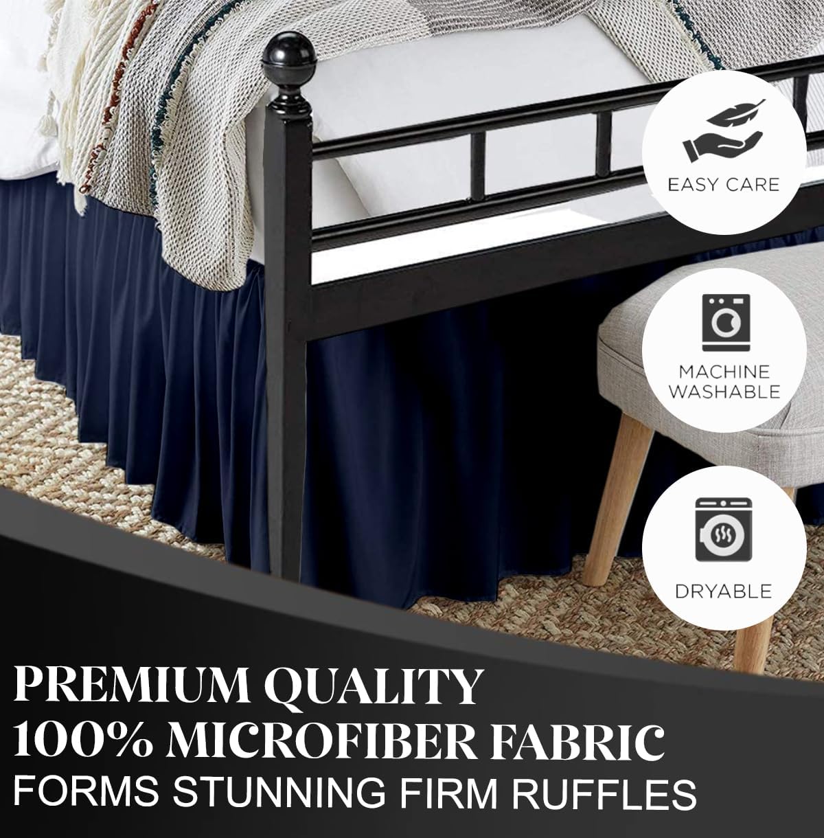 • LUXURIOUS MICROFIBER FABRIC: Ruffled bed skirt is made from 100% fine microfiber fabric softly shirred for a romantic yet tailored look. The fabric is dust and stain resistant, wrinkle-free, and extremely soft and smooth.