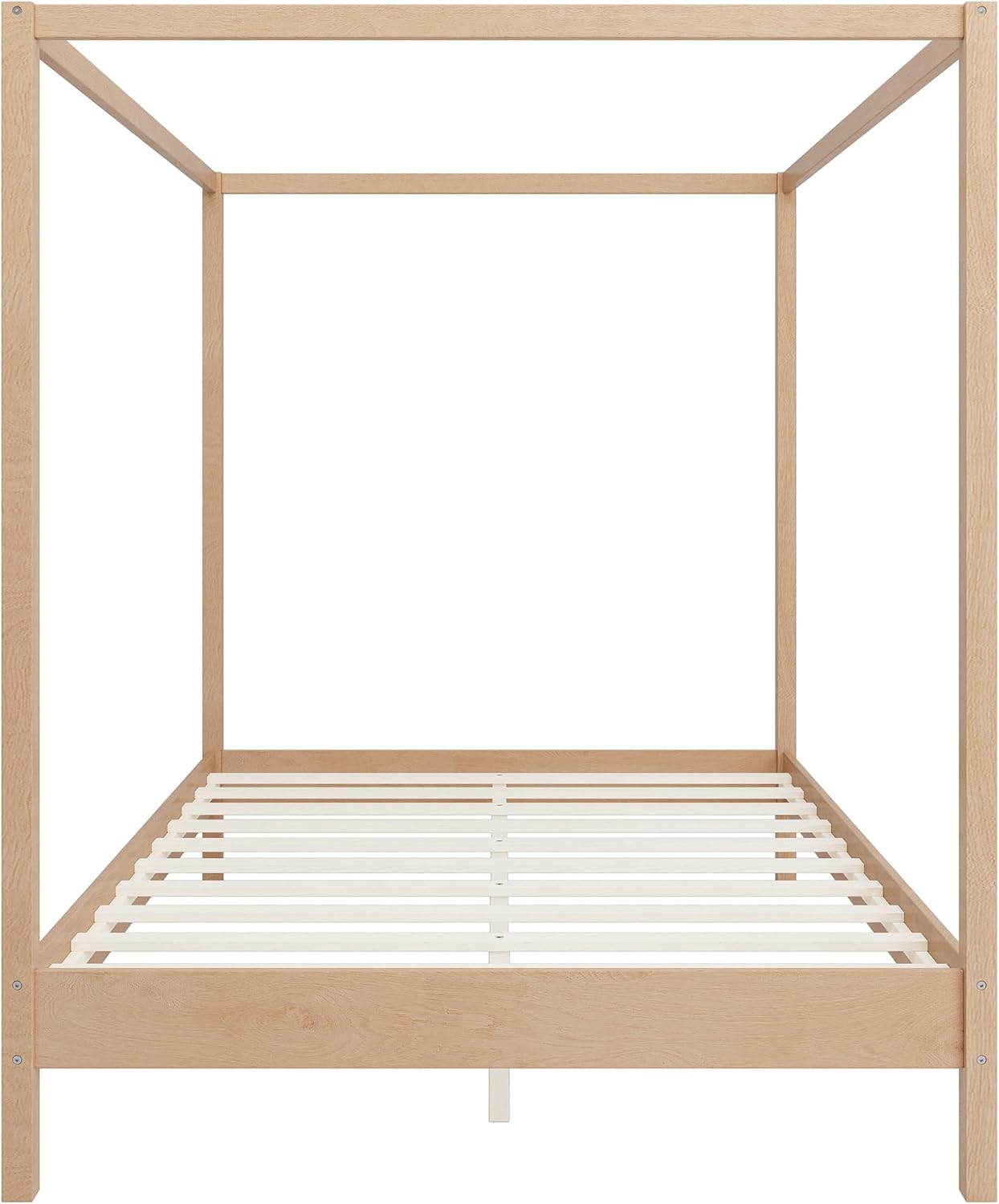 SOFTSEA Solid Wood King Size Canopy Bed Frame Poduct Name: King Bed Material: Pine wood + Plywood Package Number : 1 Color: Natural Assembly Required: Yes Mattress Included: No Box Spring Needed: No Weight Capacity: 650 LBS Recommend Mattress: 10"-12"