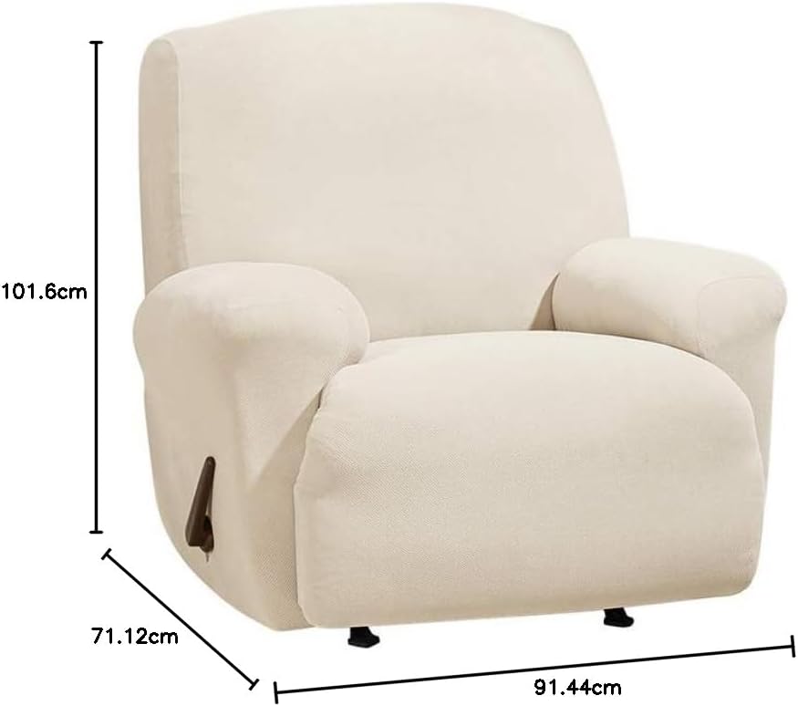 The sure fit stretch Morgan one piece Recliner furniture cover in Chocolate has an elastic seat seam in conjunction with seat pleat to help hold seat area in place. The elastic at the base of the furniture cover allows the cover to stay snug to the base of your furniture. The elastic is free-floating inside the hem of the cover to allow you to adjust fullness around the perimeter of your furniture. Versatile design allows for both square and box cushions. Arm front relaxes at 8and will cover narrow arms and extend or stretch to cover up to 14Arm widths.