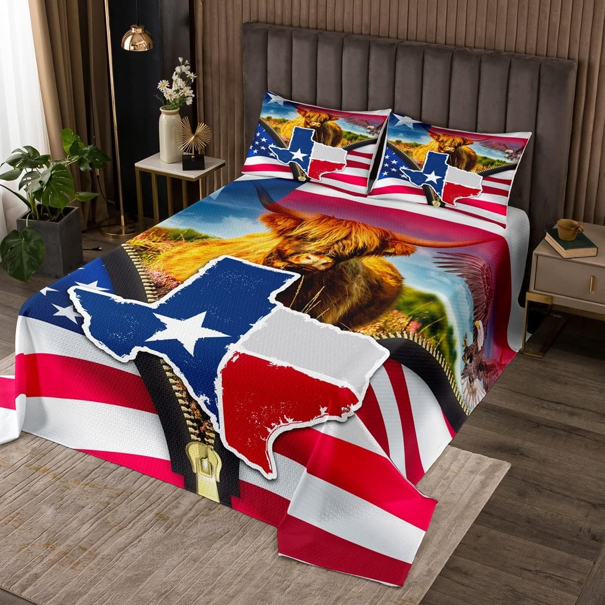 Makeover Your Bedrooms Every Season with Our Bedspread Set,Perfect Quilt Set for Your Room,Girls Boys Youth Room,Master Bedroom. Size Information Twin Size Include 1 Quilted Bedspread(68"Wx90"L) and 2 Quilted Pillow Shams(30"Wx20"L). Queen Size Include 1 Quilted Bedspread(90"Wx90"L) and 2 Quilted Pillow Shams(30"Wx20"L). King Size Include 1 Quilted Bedspread(104"Wx90"L) and 2 Quilted Pillow Shams(36"Wx20"L). A Luxurious Product for Homes,Dorm Rooms,Hotels,Guest Rooms.Practical to Use for Being Polyester,Feels Like Cotton Which Is Super Soft and Breathable.No Chemicals Used,No Dye Substance Harming The Health of You or Your Family. Vivid Colors Won't Fade Thanks to New 3D Digital Printing Methods.These Unique Designs Coverlet Set Match Well with Various Color Palettes of Your Rugs,Curtains,Headboard,Furniture,and All Other Decor Accessories. As Manufacturers of Digital Printed Home Textiles,We Follow Current Trends and Bring You The Latest Home Fashion. Either to Your Family,Friend,Relative,Boyfriend Girlfriend,Your Mom,Dad,Sister,Brother,Grandma,Wife,Husband,Daughter,Son and All Other Beloved Or to Yourself,The Item Should Be Interesting and Authentic. The Bedspread and Pillow Shams Are Printed on The Front Side Only,The Back of Bed Set Bedding Set Are White Colored.Comforter Is Not Included In The Set. Your Satisfaction Is Our Priority,We Sincerely Hope You'll Love it.