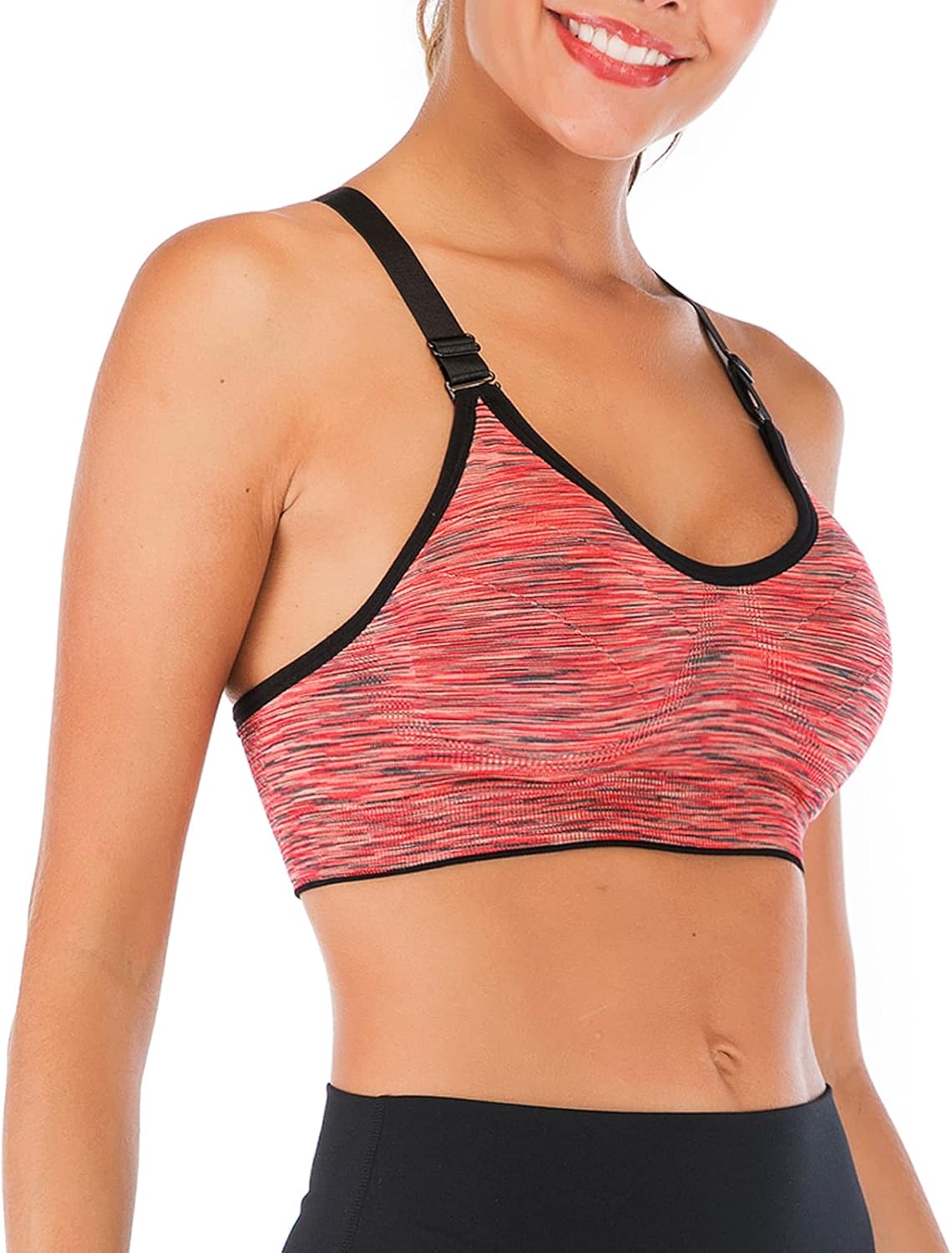The reasons why you should choose our sports bra. 1.From the perspective of sports medicine. Our sports bra can limit chest bouncing off of the range to protect the breast from suspensory ligament damage. It has a good support protection,through the uniform tension retainer to supporte the weight of the breast, rather than simply the chest compressions. 2. From the perspective of sports. Breathable. The sweat can be discharged without being absorbed by the bra which can help the temperature keep in the normal range between the skin and the cloth. Do not obstruct the free movement of the shoulder blades and allow the shoulders to rotate freely. 3.From design. This racerback sports bras are seamless will not chafing your skin. With the removable pads which are easy to put in and take out, you can easily to change them. Fashion design and you can wear it outside or inside. Reduce the movement effectively:The straps are wide and supportive and the back stretchy design offers extra support while you are doing exercises. H back suspension and full cup designed to support medium to high impact workouts. Friendly to your skin and Comfortable to wear: The material is elastic, also breathable,it does not feel uncomfortable or itchy. What you get:1 x Sports bra. Size Chart S(32A 32B 32C 32D 34A 34B 34C) Over bust:31.5''-35.4'', M(34D 36A 36B 36C 36D 38A 38B) Over bust:35.4''-41.3'' L(38C 38D 38E 40A 40B 40C 40D) Over bust:41.3''-47.2'' XL(40E 42A 42B 42C 42D 42E 42F) Over bust:47.2''-53.1'' If you have any question about this sports bra, Please contact us we will respond promptly and solve the problem.